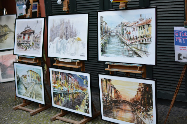 We then managed to get to Navigli ahead of the aperitivo buffet that started at 18:00. The sellers on the streets made the place colourful and exuberant. There were several artists who put up their paintings and other work for sale. We bought a few photographs, which were taken in the early 1900s, of the places that we visited in Milan. We had a good aperitivo buffet at one of the busiest restaurants on the banks of the canal in Navigli.