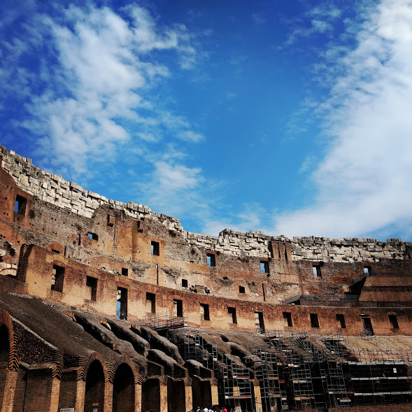 On our 9th and last day in Italia, we visited the Roman Forum, the Palatine Hill, and the Colosseum. There were long queues to see all three of these attractions, which are also closer to each other. I was a little disappointed with the way the Colosseum looked; most of it was destroyed by earthquakes over the years and attacked by stone robbers. Well, I’m the kind of person who was disappointed even with the way the Taj Mahal looked. Notwithstanding the way it presently looks, the Colosseum’s Medieval and Modern history was incredible and it’s such a huge structure that is extremely ancient.